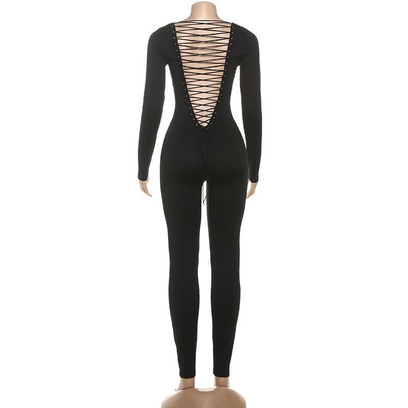 New Womens Fashion Solid-color Sexy Hollow-out Backless Bodycon Jumpsuit