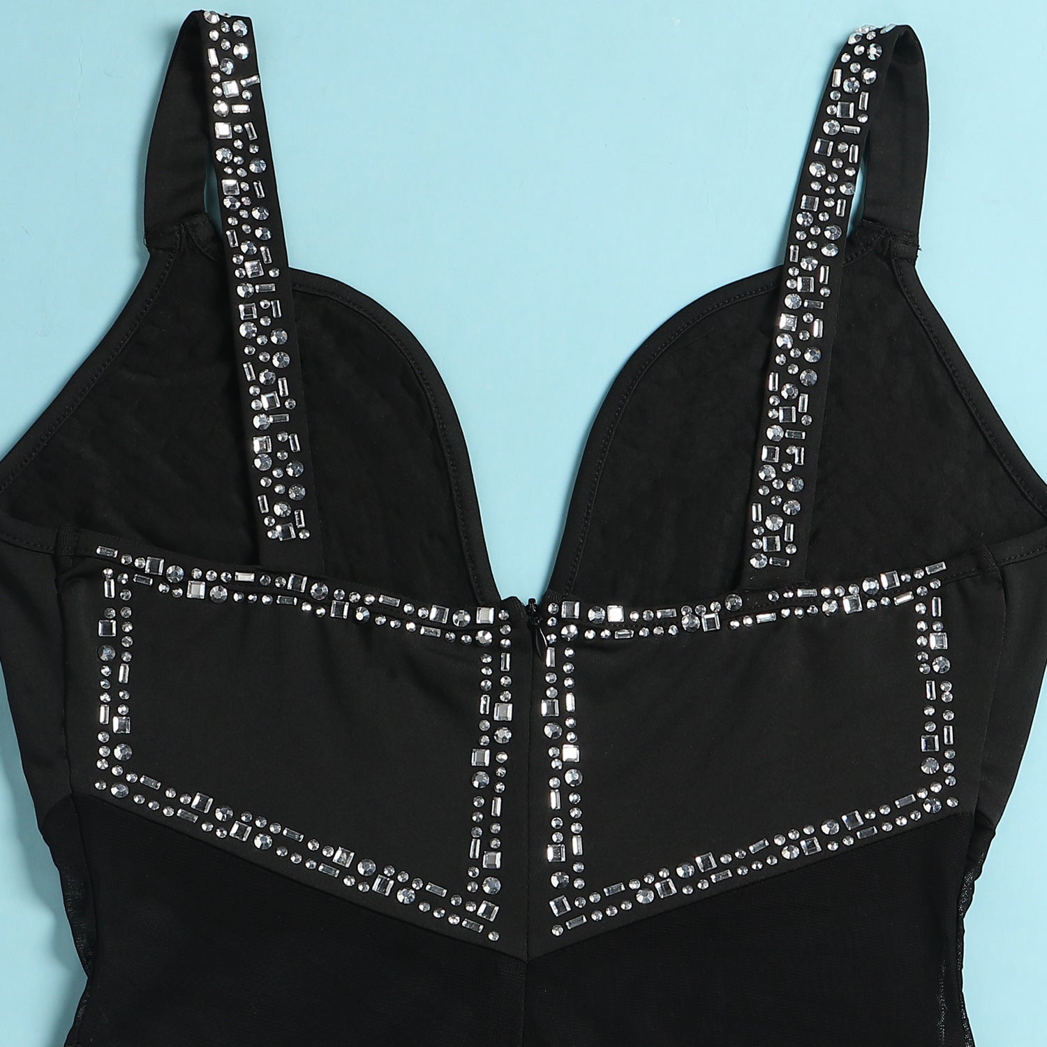 Women's See-through Deep V Rhinestone Jumpsuit
