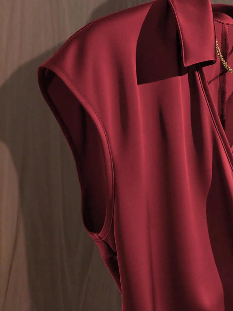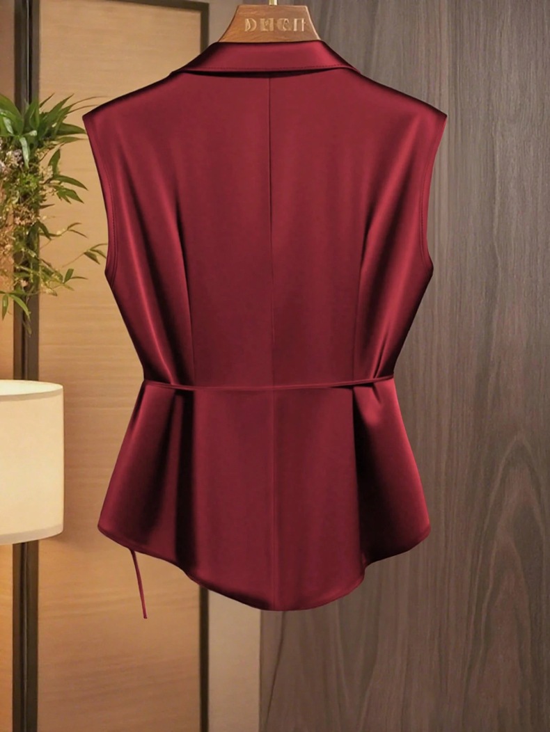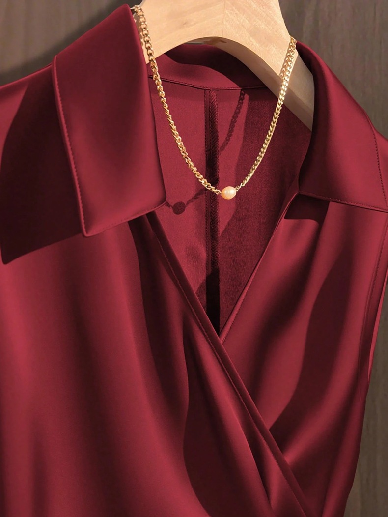 Womens Solid-Color Casual Satin Top With Lace-Up Bow Design